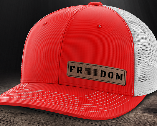 Freedom (left), Leather Patch Trucker Hat