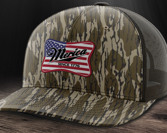 Merica Flag, Leather Patch Trucker Hat