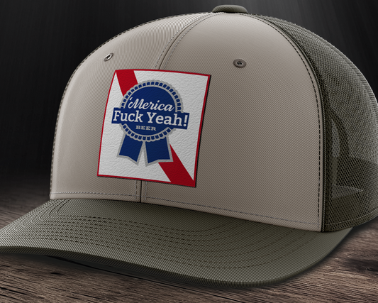 Merica F Yeah, Leather Patch Trucker Hat