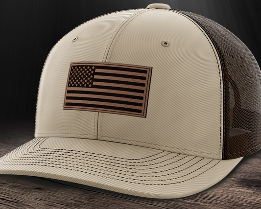 American Flag, Leather Patch Trucker Hat