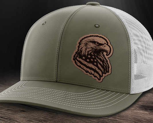 Eagle Flag, Leather Patch Trucker Hat